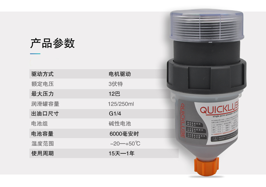 QUICKLUBE自動(dòng)加脂器系列(125∕250ml)是運(yùn)用于變化溫度或遠(yuǎn)距離安裝應(yīng)用下